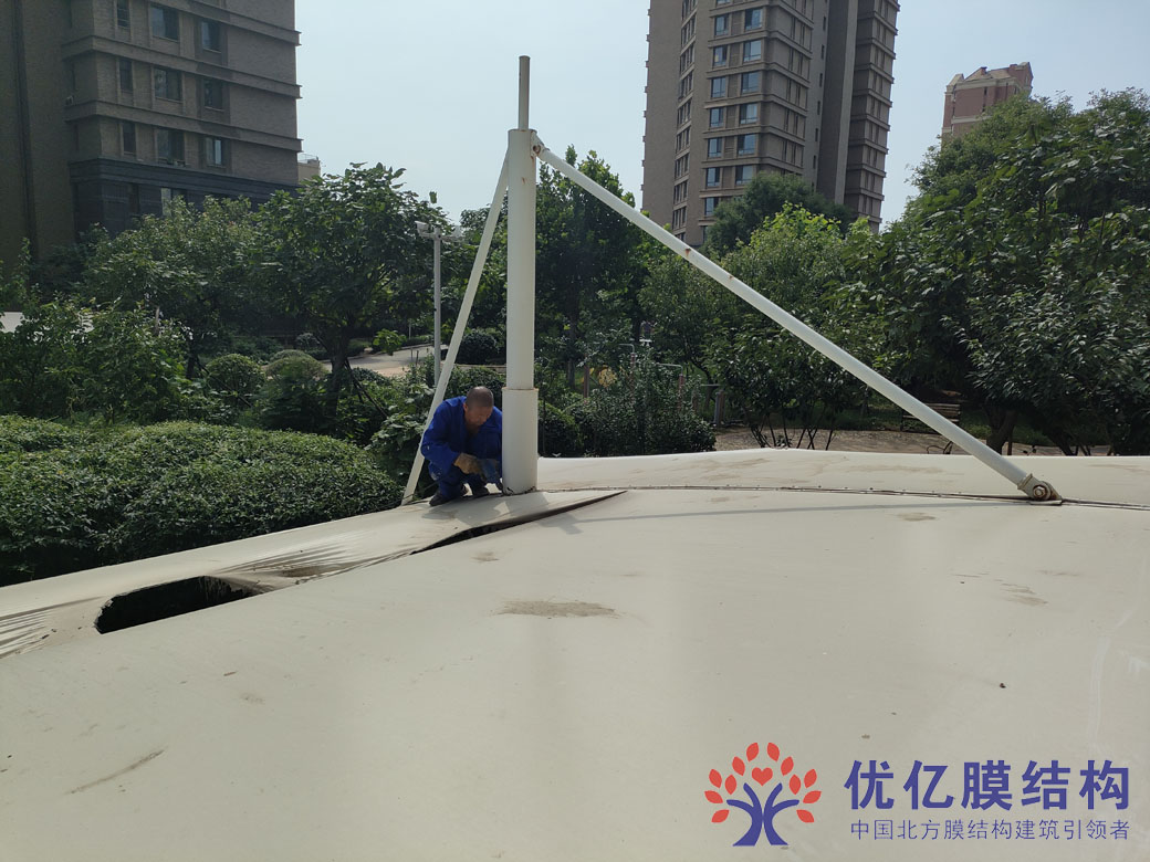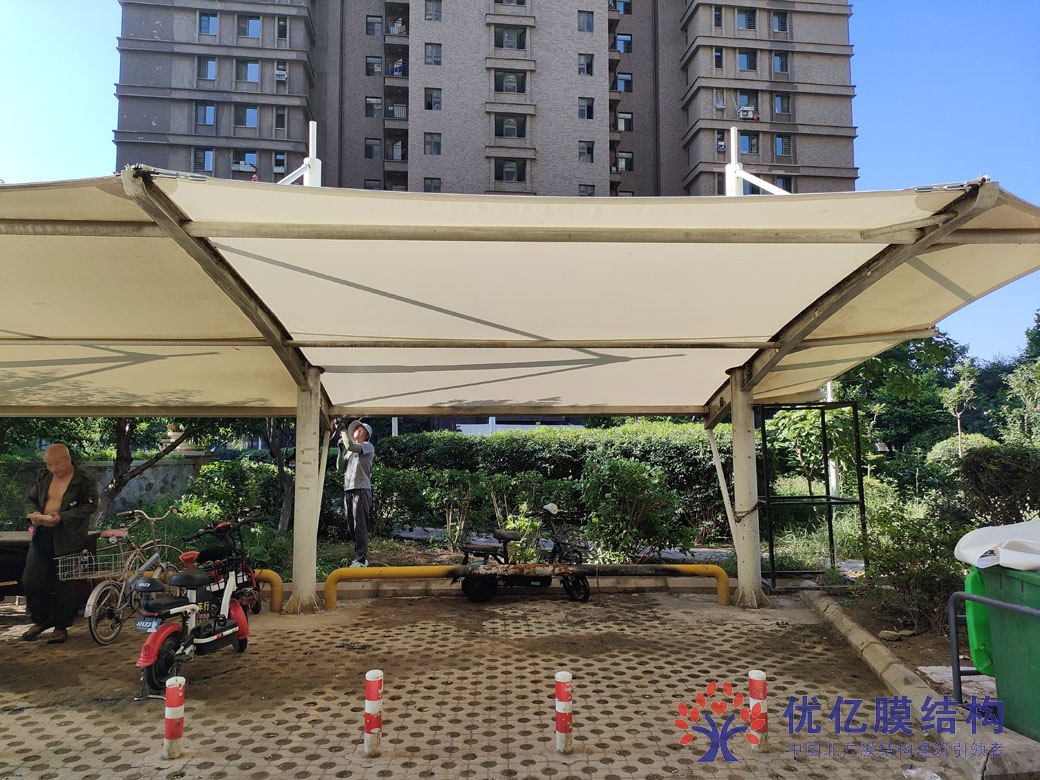 由此可见,车棚所用的膜材为阻燃材料,离火即灭,所以才没有造成整个车棚的膜材都一起损坏的情况。只需要对损坏的膜材做更换即可。