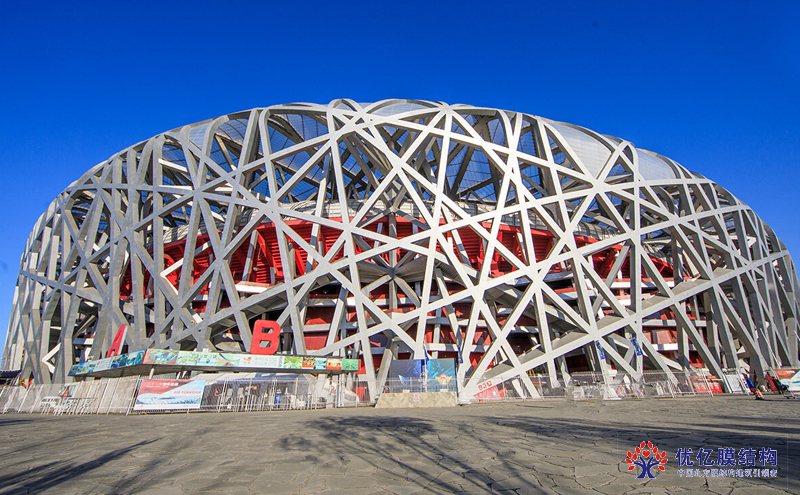鸟巢采用了膜结构设计,由24个钢骨架和超过110,000平方米的膜材料组成。其独特的外观和结构成为了北京奥运会的标志性建筑之一。