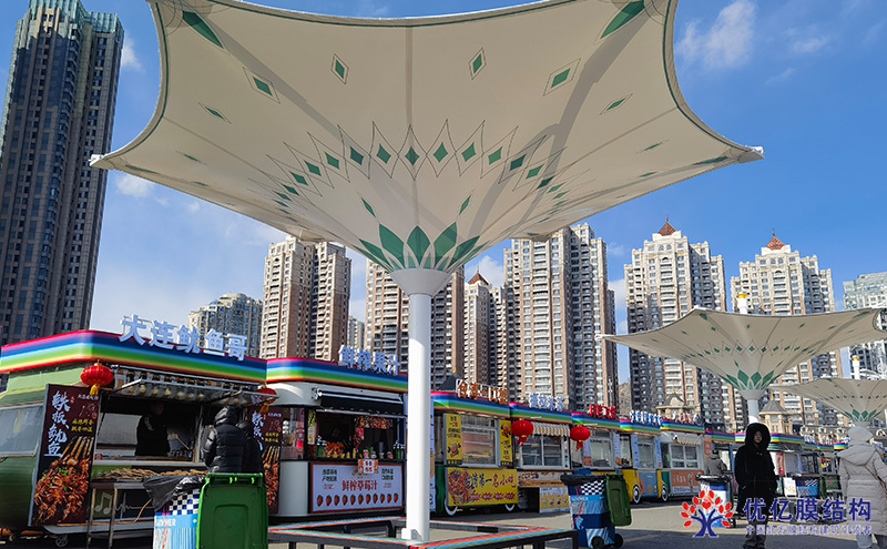 近日,由优亿膜结构设计施工的星海广场遮阳伞项目正式交付使用。30把定制化膜结构遮阳伞如绽放的"海上蒲公英",将现代工程美学与滨海气候适应性完美结合,为市民提供舒适休憩空间的同时,也成为广场标志性景观。