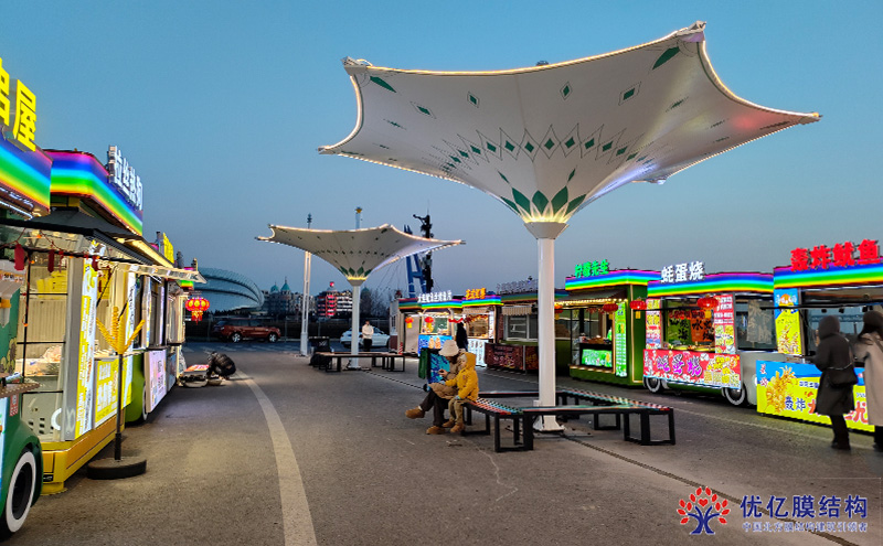 采用钢结构骨架+PVDF高耐候膜材,成功抵御8月连续大风考验(实测抗风12级)